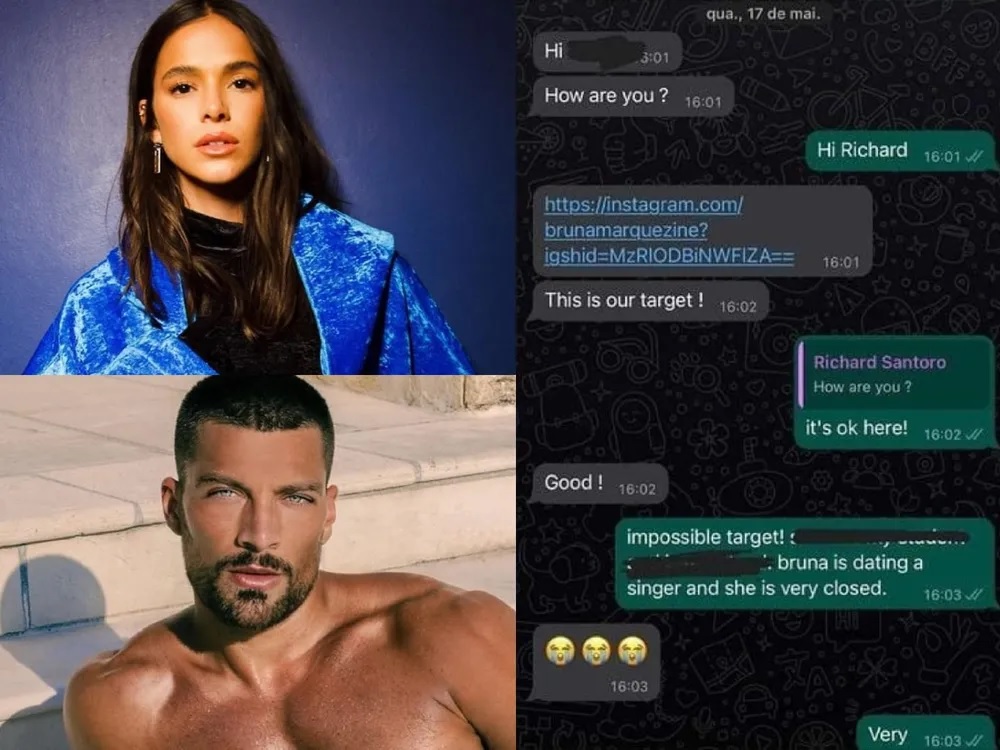 A coluna publicou o print de uma mensagem que seria do assessor do ator falando com um produtor brasileiro, na tentativa de ‘mirar’ em Bruna. "Ela é o nosso alvo", dizia o assessor.