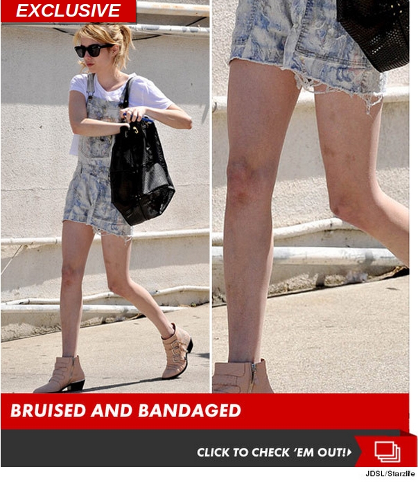 Hematomas nas pernas da atriz após o ocorrido. . Foto: Reproduçãio/ TMZ.com