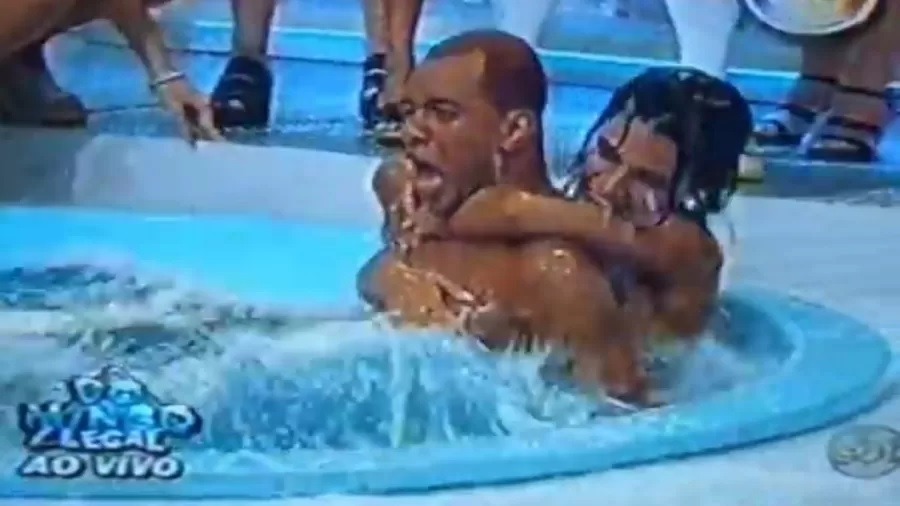 "Então, eu lembro, na banheira, que o Anderson do Molejo veio e colocou a mão dentro do meu biquíni. Ele fez um exame ginecológico.”, disse, chocando os apresentadores.