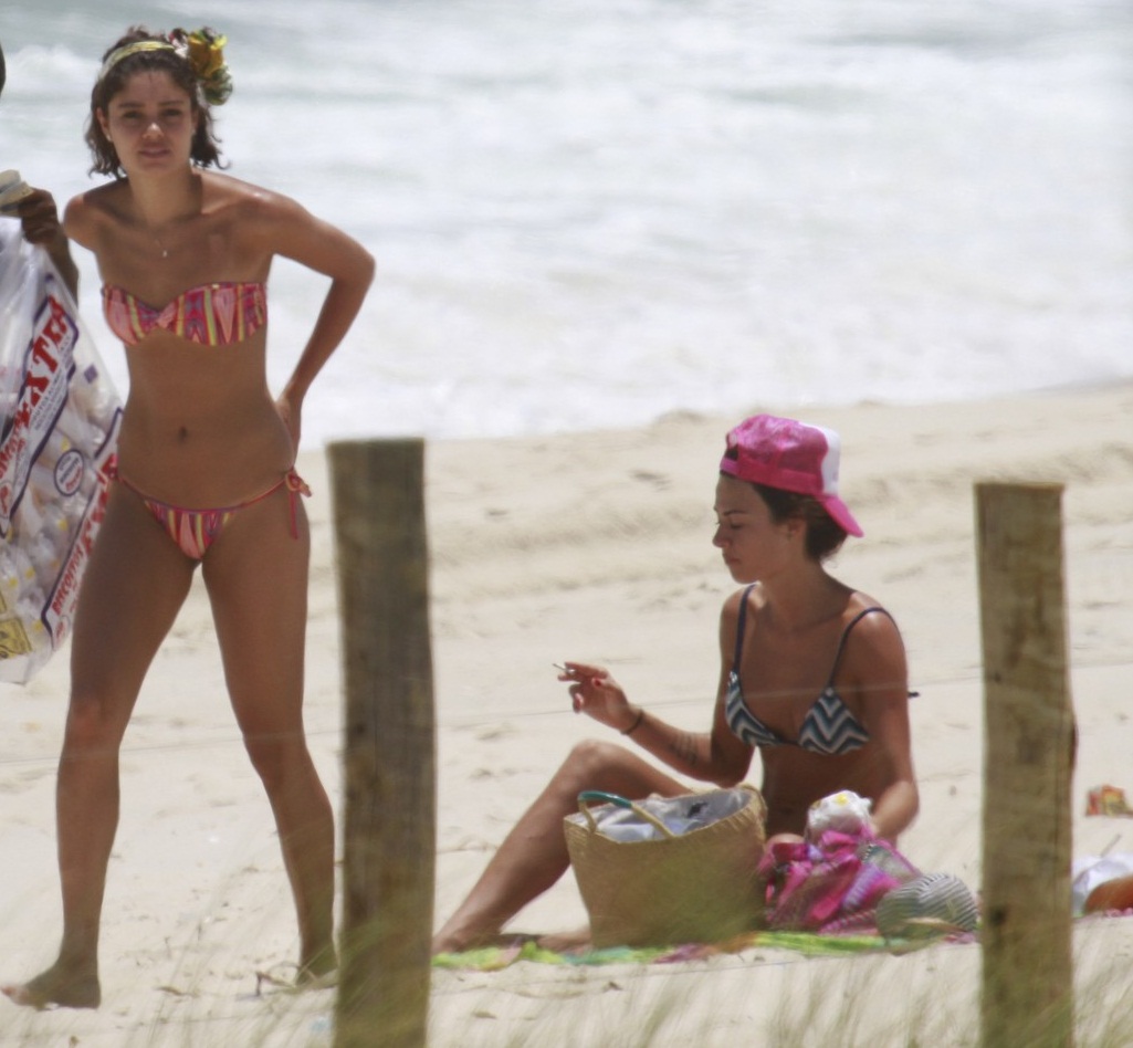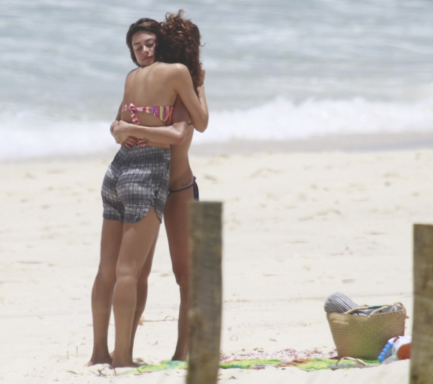 Com pequenos biquínis, as atrizes foram aproveitaram para se bronzear e desfilaram nas areias os seus corpinhos dignos de top model. Casada com Paulinho Vilhena, Thaila Ayala passava o bronzeador e protetor na pele quando sua amiga Sophie, que recentemente terminou o namoro com Malvino Salvador, chegou e lhe deu um longo abraço.