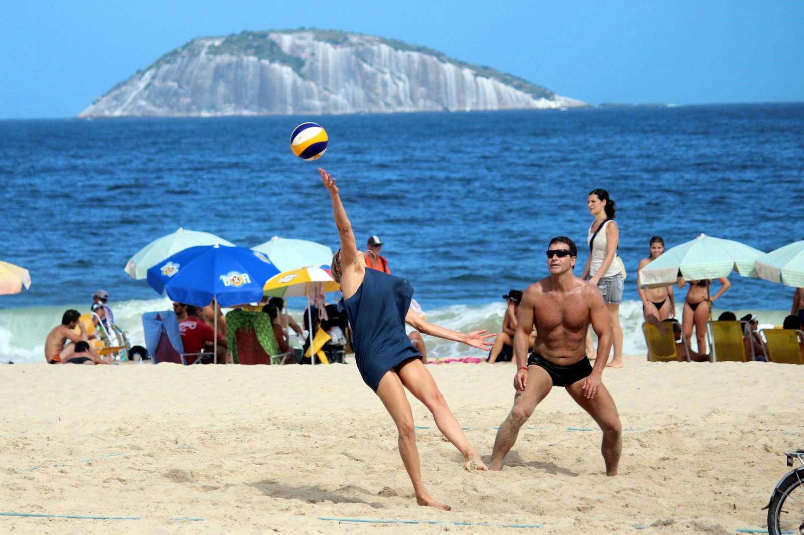 Morando pertinho do mar, ela foi andando mesmo e desacompanhada, jogou uma partida de vôlei e voltou só de biquíni, atravessando as ruas da Zona Sul Carioca.