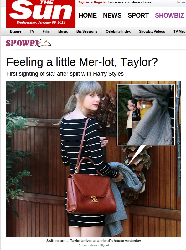 No twitter , Taylor também não fez questão de esconder o jogo. A moça, que tem o 13 como número da sorte, escreveu, antes do término " Há números 13 por todos os lados! Isso é PERFEITO! " já depois do fim da relação, comentou " Até você me decepcionar ".