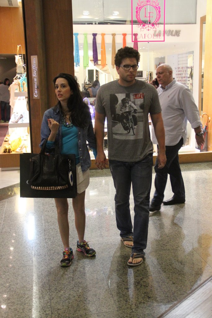 Thiago Fragoso saiu um pouco da pele de Niko, que em "Amor à Vida" é ex-marido de Eron (Marcello Antony) e se envolve com Félix (Matheus Solano), para ir às compras de Natal com esposa, Mariana Vaz.