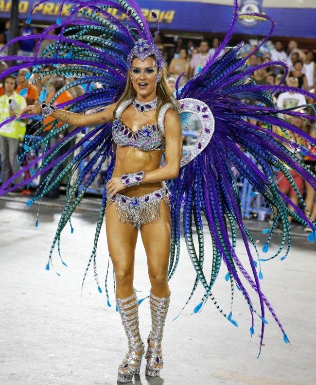 Já Thaila Ayala, recém separada de Paulinho Vilhena, mostrou que as magrinhas também têm vez na Sapucaí e exibiu sua barriga em uma fantasia cheia de pedras e penas em tons de roxo, azul e verde, Confira.