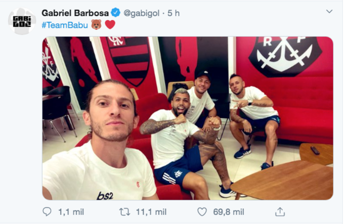Babu Santana é flamenguista e já comentou no reality que gostaria de saber se Gabigol continua no time rubro-negro.
