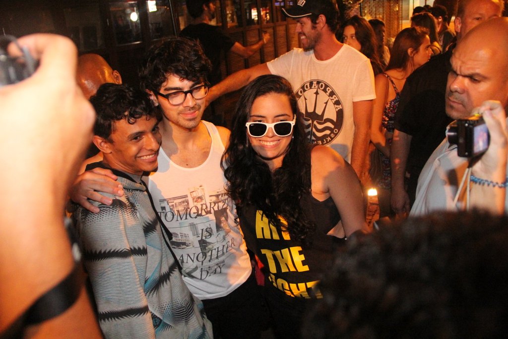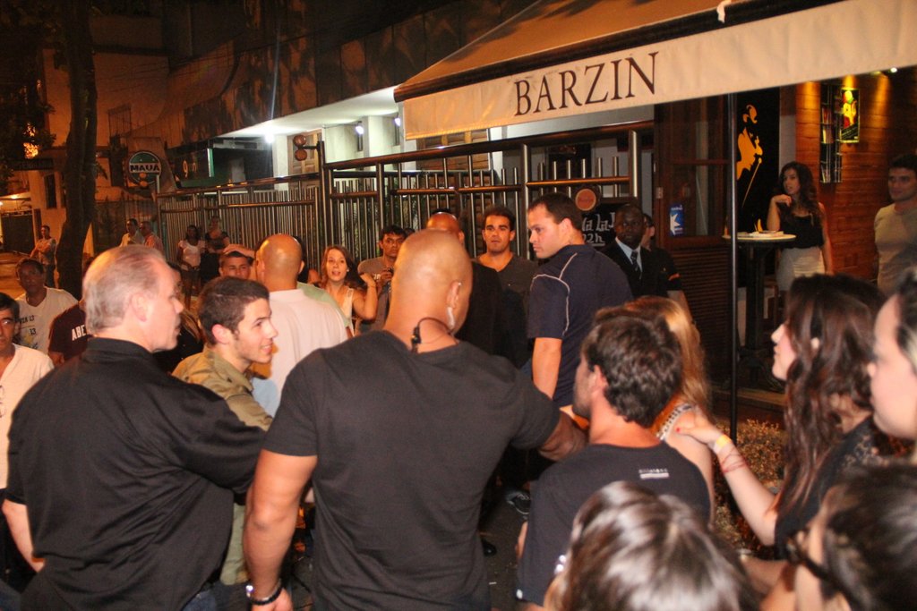 Joe, Kevin, e Nick Jonas aproveitaram sua estadia no Rio de Janeiro para curtir a noite da terça-feira (12) no Barzin, em Ipanema. Os três irmàos americanos foram acompanhados de suas namoradas e seguranças, causando tumulto. O ex-jogador de basquete americano, Ron Harper, também estava presente no local.