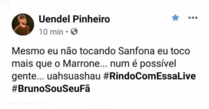 “Mesmo eu não tocando sanfona eu toco mais que o Marrone… num é possível gente… uahuasha #RindoComEssaLive #BrunoSouSeuFã”, escreveu no Facebook.