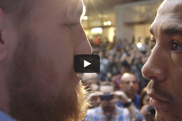 Continuando o tour do UFC por várias cidades ao redor do mundo para divulgar a luta principal do UFC 189, José Aldo e Conor McGregor tiveram o maior momento de tensão até agora em Toronto, no Canadá.