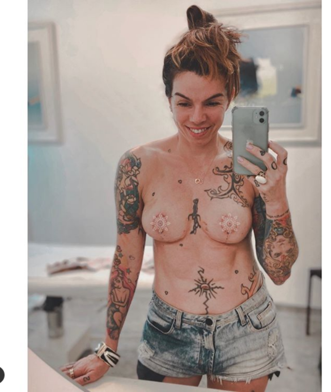 A apresentadora Penélope Nova mostrou os seios no seu Instagram, nesta segunda-feira (17). No clique, ela aparece usando apenas um adesivo para cobrir os mamilos e compartilhou com os seguidores o resultado da cirurgia que fez para levantar os seios há um mês.