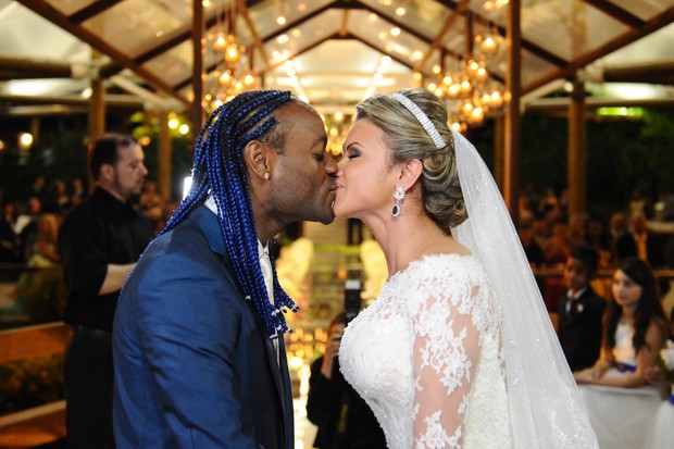 O casal uniu matrimônio em uma cerimônia realizada para aproximadamente 500 pessoas, na casa de festas Lajedo, em Vargem Pequena na zona oeste carioca.