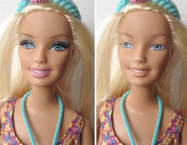 Parece que, assim como as celebridades, nem as bonecas escapam das fotos de "antes e depois", sem maquiagem. As vítimas dessa vez foram as bonecas que possuem uma aparência bem artificial (mesmo levando em conta que são de plástico), como a Barbie, as Bratz e a Cinderela, e rotulam um 'padrão de beleza' distante da realidade.