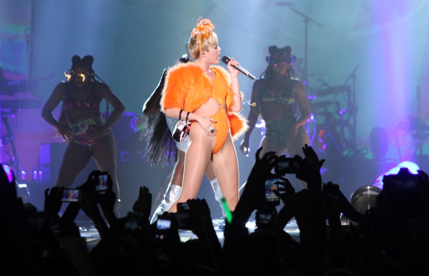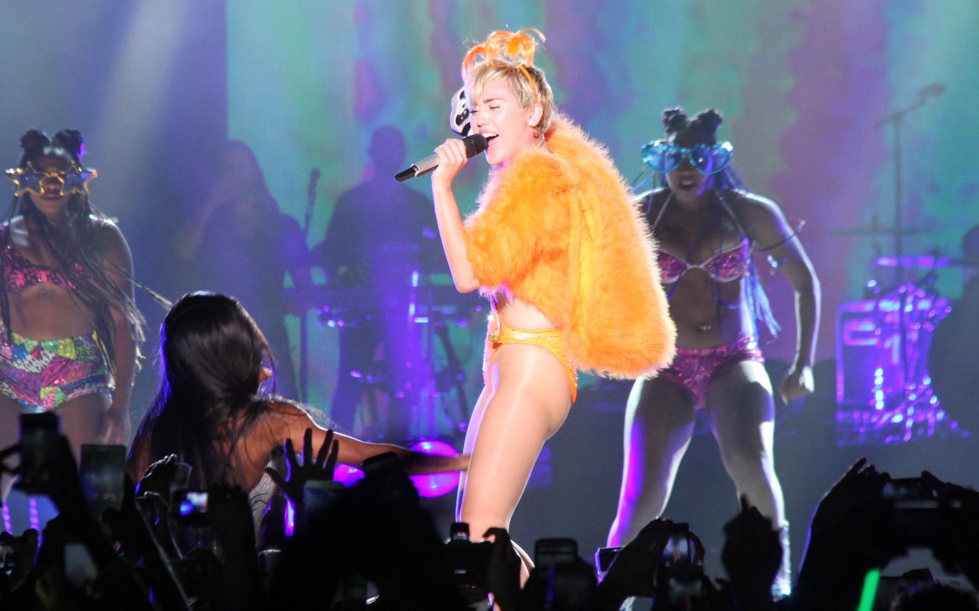 Em turnê pelo Brasil com o show "Bangerz", Miley Cyrus aproveitou a animação brasileira para descarregar toda a sua forma despojada. Desde que deixou de ser a "garota Disney", Miley tem dado o que falar com performances cada vez mais ousadas. Confira as imagens do show da musa teen do momento no Brasil: