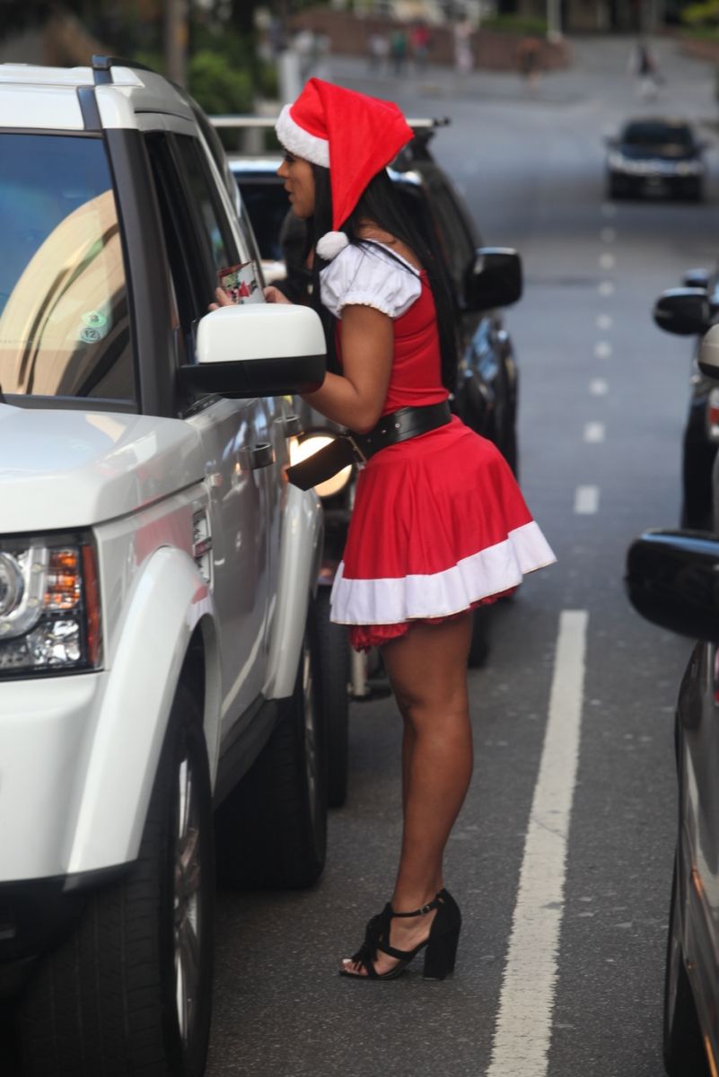 A morena que tem uma derriére de dar inveja na mulherada, se vestiu de mamãe noel e passou a tarde na Avenida Paulista, vendendo cartões de natal em prol do CAJEC, Casa José Eduardo Cavichio, uma instituição que cuida de crianças com câncer, no MASP em São Paulo.