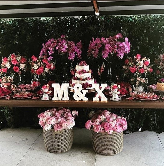 A festa que teve direito a bolo e uma bela decoração feita pela melhor amiga, a atriz Luma Costa, com as iniciais de Marina e do noivo, Xande Negão. O casamento, que promete ser a festa do ano,  acontece em outubro, em Campinas, no interior de São Paulo.