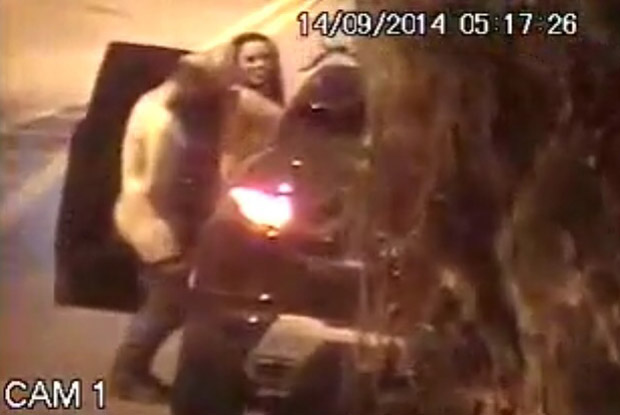 O vídeo mostra um carro preto parando em uma rua deserta de madrugada no dia 14 de setembro deste ano. Um homem desce do veículo e logo depois surge a mulher nua e faz sexo com ele.