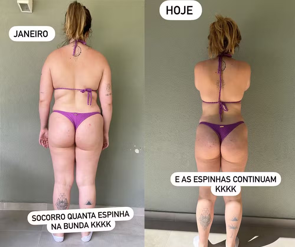 "Sim, gente, foi só com treino, alimentação e muita água. Tive que abdicar de comer muita coisa que gosto, que acordar cedo pra treinar mesmo cansada. Temos que escolher nossa luta, o que dói mais: a dieta e o treino ou não estar saudável e não se sentir bem quando se olha no espelho?", afirmou a influenciadora.
