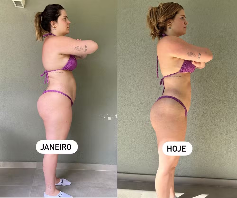 Viih Tube, 24, compartilhou nesta sexta (9) fotos exibindo a transformação de seu corpo após perder 15 kg desde janeiro. Usando o mesmo biquíni, a influenciadora mostrou registros de frente, costas e perfil, destacando a diferença no abdômen e no bumbum.