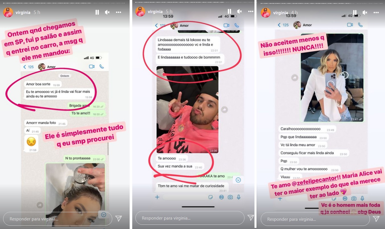 A influenciadora mostrou a conversa que teve com o cantor via WhatsApp enquanto chegava ao salão e realizava a mudança. Todo o tempo, Zé Felipe incentivava a esposa, afirmando que a ama, que ela é linda e que iria ficar mais linda ainda.