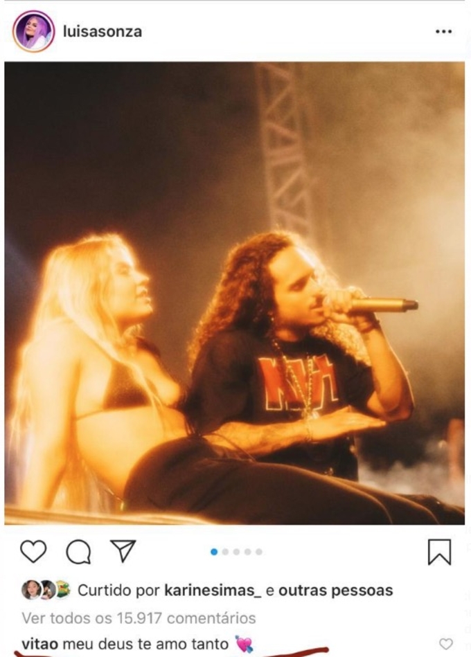 Vitão, logo escreveu "meu deus como eu te amo". Sonza curtiu e comentou "também meu nenê".