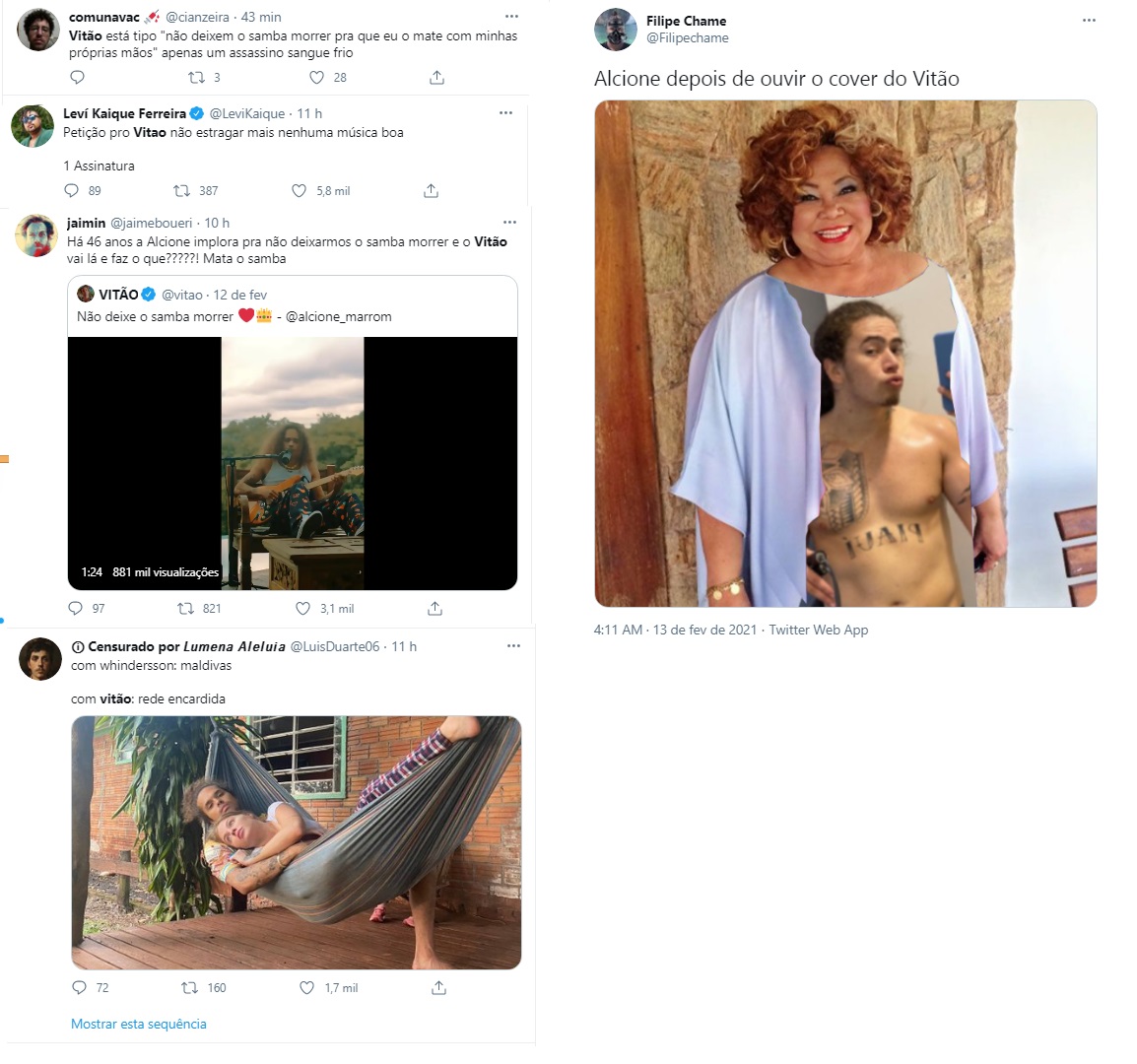 “Deixou o samba morrer”, “não deixem o Vitão estragar mais uma música", foram alguns dos comentários mais leves.