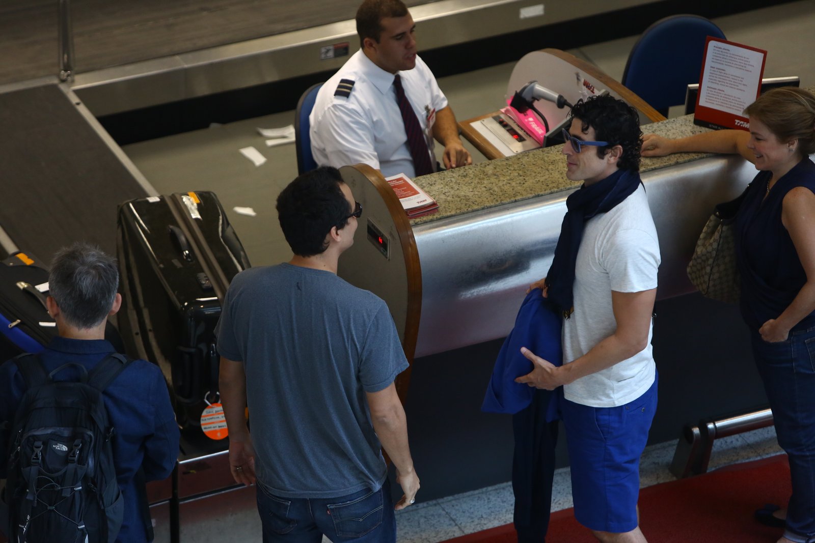 Enquanto Wagner Moura e Reynaldo Gianecchini faziam check-in na empresa no aeroporto de Santos Dumont no Rio, acabaram se encontrando e colocando o papo em dia.