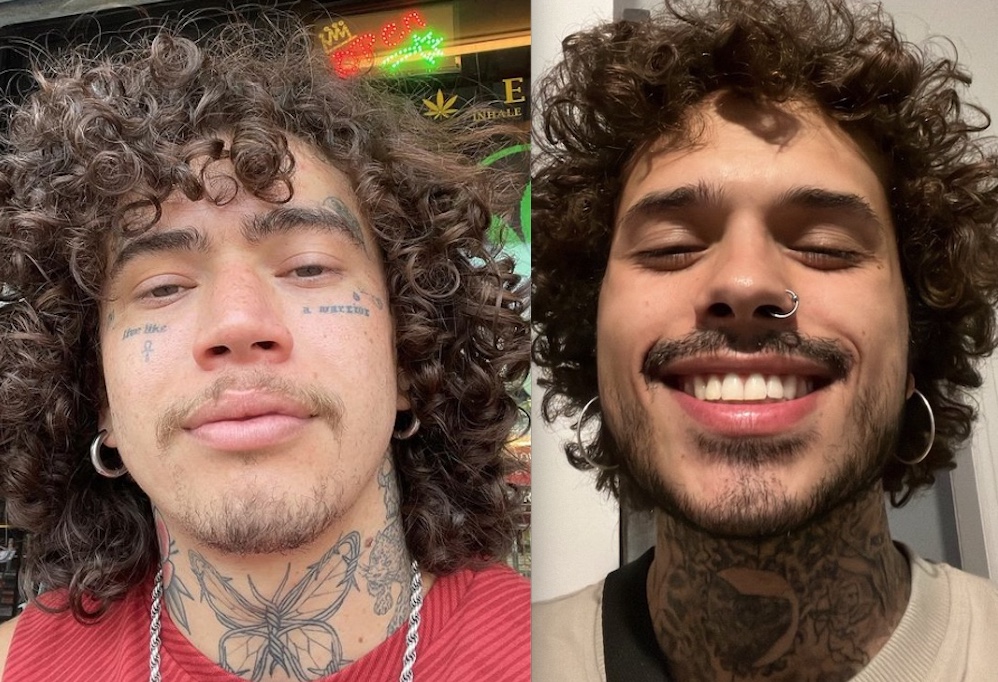 A foto publicada hoje por Vitão mostra o novo visual do cantor, que vem sendo comparado a Whindersson, com cabelos cacheados, barba e tatuagens.