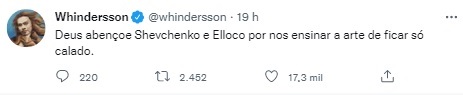 "Doa a quem doer, Whindersson Nunes foi responsável por isso, não só por não negar [os boatos] mas sim por, na época, fazer piada de corno e, depois de quase 2 anos, só desmentir a situação", dizia um internauta na legenda do post compartilhado por Whindersson.
