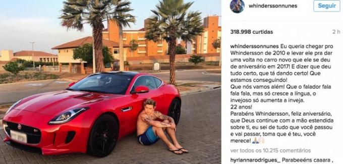O youtuber mais popular do Brasil, Whindesson Nunes, completou 22 anos nesta quinta-feira, 5, e não deixou por menos ao se presentear.