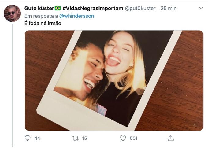 O post repercutiu rapidamente: “É fod* né, irmão?”, comentou um internauta postando a foto de Luísa e Vitão. “Talarico é fod* mesmo parceiro”, comentou outro se referindo a Vitão.