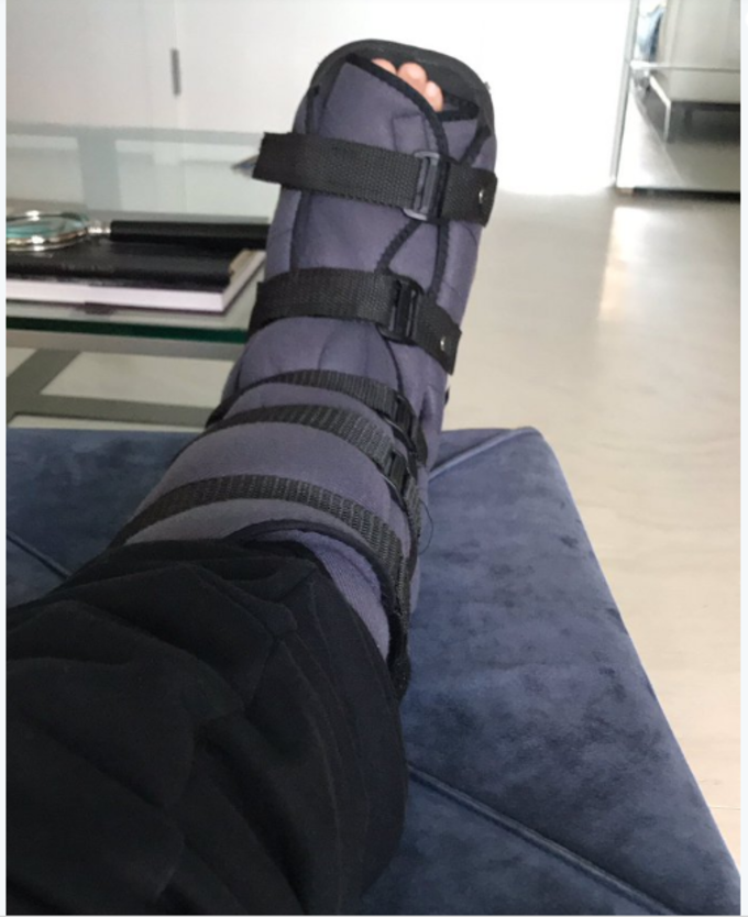 Na legenda da foto do pé imobilizado, ele diz estar "contando" as "oito semanas" que precisa para se recuperar.