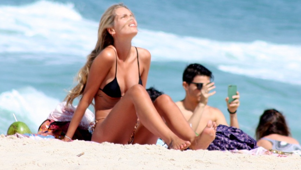 Yasmin Brunet não quis saber de curtir a praia sozinha na tarde deste domingo, 31, no Rio de Janeiro.