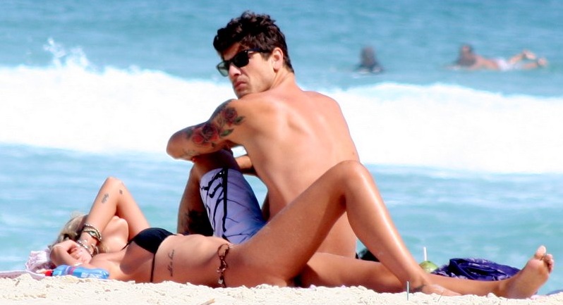 Juntinhos, os dois deitaram na mesma canga e ficaram de 'conchinha'.