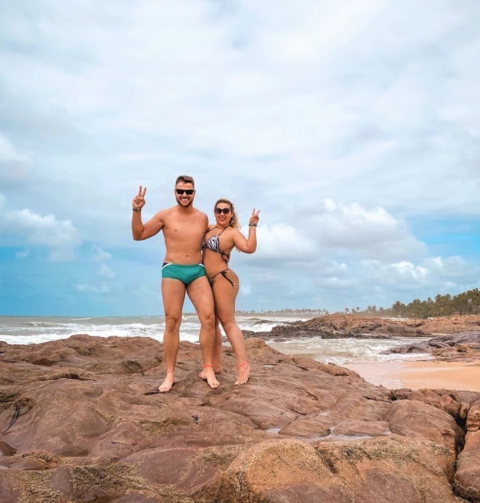 O cantor está curtindo férias com a mulher Natalia Toscano, em Costa do Sauípe, na Bahia.