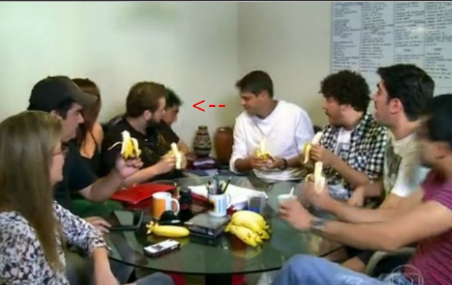 Constrangido, Zeca tentou disfarça colocando a culpa em terceiros: "Fui vítima do 'Tá no Ar' só porque eu trouxe uma banana aqui para brincar com eles".