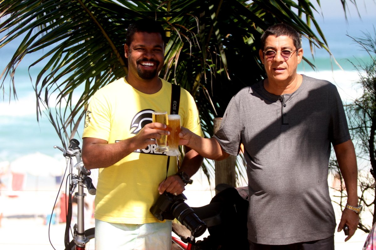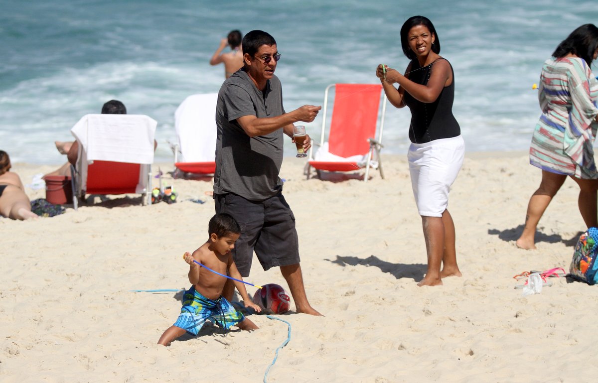Zeca Pagodinho mostrou mais uma vez que é mesmo 'gente como a gente' e aproveitou a tarde desta sexta-feira, 2, para curtir o neto. Claramente sem deixar a querida cervejinha de lado, paga por um paparazzo que é fã do artista, o pagodeiro brincou nas areis da Praia da Barra da Tijuca, no Rio de Janeiro.