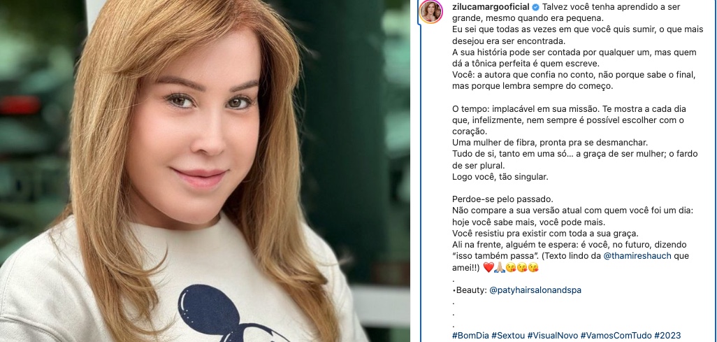 Na legenda da imagem, Zilu postou um texto filosofando sobre a vida: