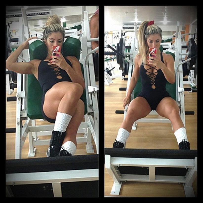 Andrea de Andrade entrou na onda das fotos enquanto se exercita. Para a academia, a Madrinha de Bateria da Casa Verde usou uma calça super colada, que deixou os seus atributos bem visíveis.