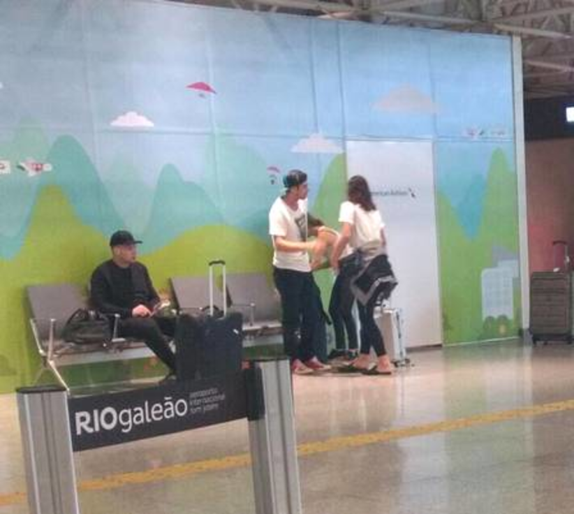 O ator acompanhou a atriz que esperava por Bruna Marquezine para embarcar para Nova York. O galã se despediu de Tatá com um beijo no rosto e outro na cabeça.