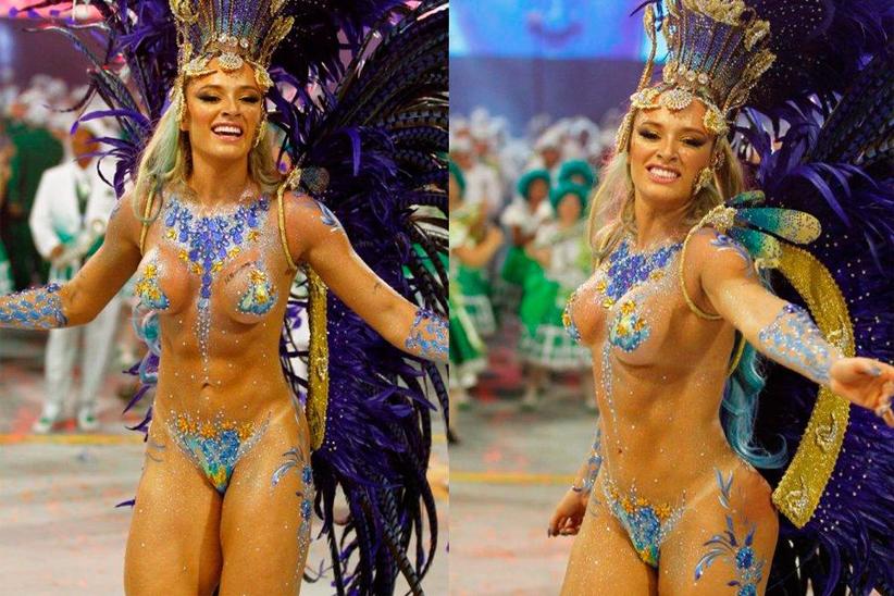 No desfile da Mancha Verde, a beldade exibiu seu físico 'trincado' como musa da escola, e até chegou a ser comparada com Gracyanne Barbosa, conhecida por ser a mais musculosa do carnaval.