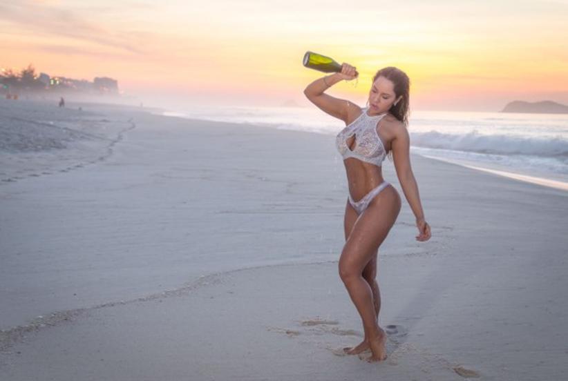 Mulher Melão fez um ensaio sensual em clima de réveillon na praia da Barra da Tijuca, no Rio de Janeiro.