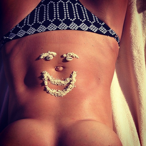 As fotos que Heidi Klum anda publicando no seu perfil no Instagram estão dando o que falar. Aos 40 anos e mãe de 4 filhos, a top model e apresentadora alemã não se intimidou em publicar uma foto apenas do corpo, mostrando parte dos seios de topless, barriguinha e virilha, com direito a uma 'carinha' sorrindo feita de areia. 'Sorria', comentou.