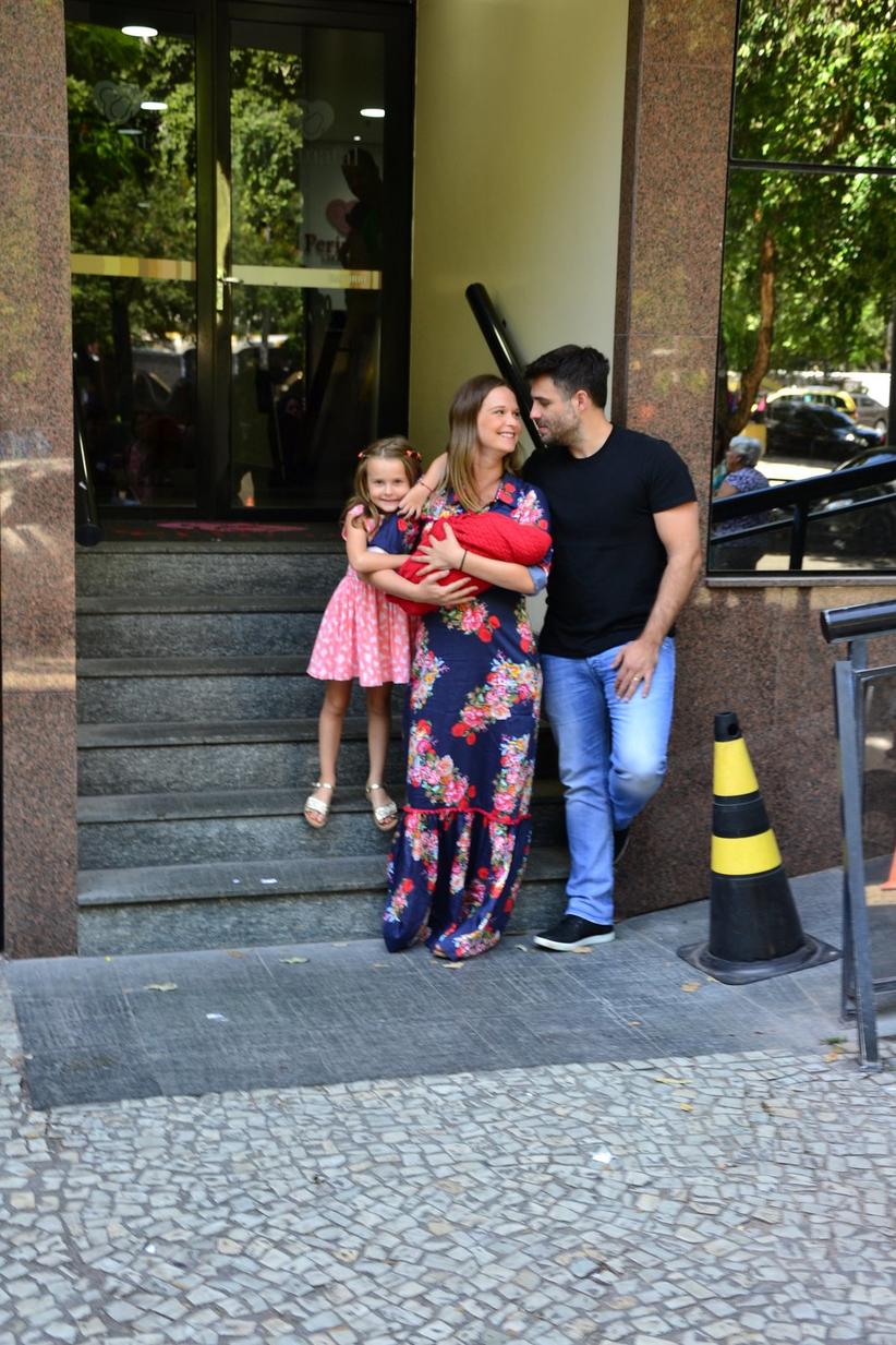A atriz deixou o local acompanhada do marido, Raoni Carneiro, da filha mais velha, Luisa, e do pequeno Bento.