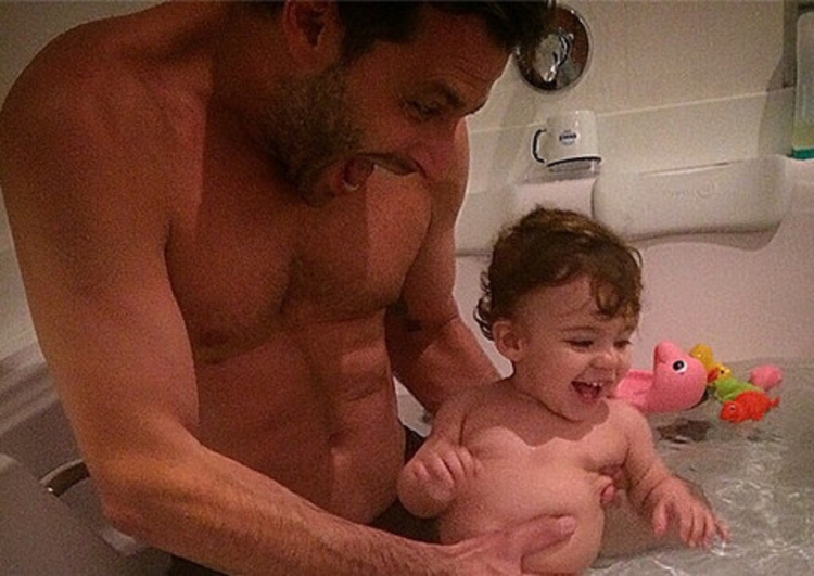 "Hora do Banho, eu sei que ela ama, mas eu amo muito mais...", escreveu o galã na legenda.