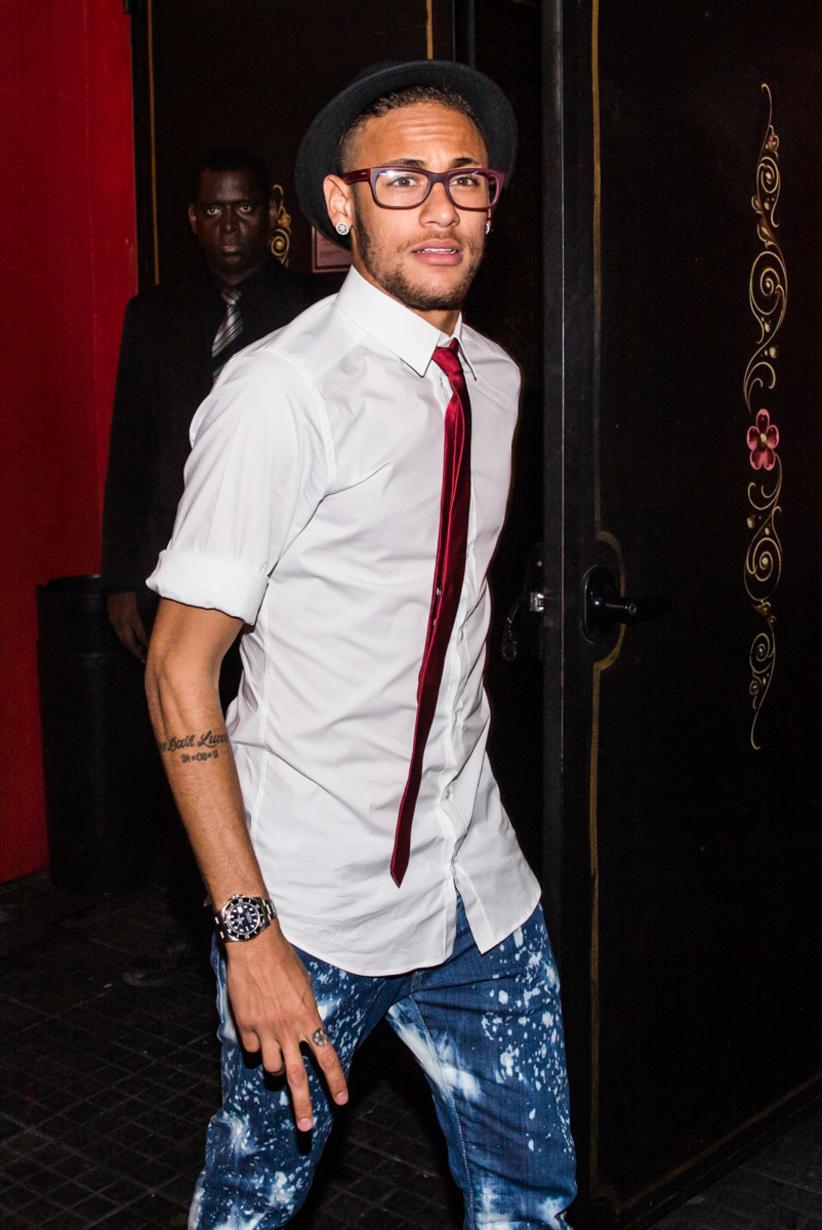 Para tentar driblar a imprensa, Neymar e a irmã chegaram em carros separados, mas o atacante do Barcelona logo foi visto.