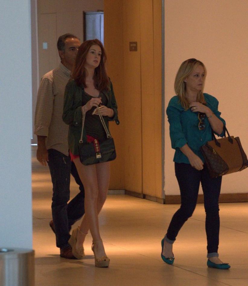 De short curtinho e saltão, a ruiva esbanjou simpatia e como de costume acenou para os paparazzi.