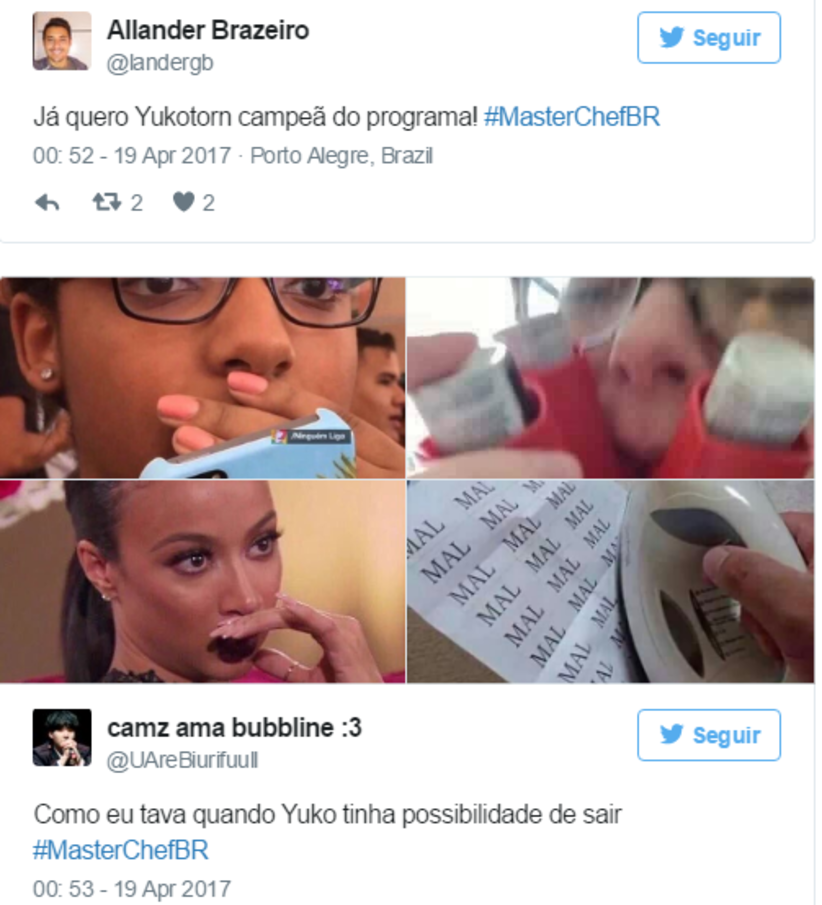 Yuko e Natália foram as duas candidatas com piores desempenhos na prova do medalhão de filé mignon ao molho mostarda e movimentaram a web. No Twitter a tag #MasterChefBR ficou em alta.