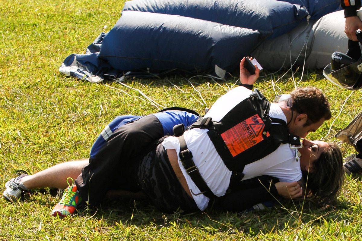 Já em terra firme, o casal se abraçou e se beijou muito. Trêmulo com a surpresa, Greto disse aceitar o pedido e ter ficado muito emocionado com a ação da noiva. Este foi o 4o. salto de para-quedas de Mayra e o 5o. de Greto. Mayra ainda guarda mais 3 pedidos surpresas, que, segundo ela, acontecerão muito em breve.