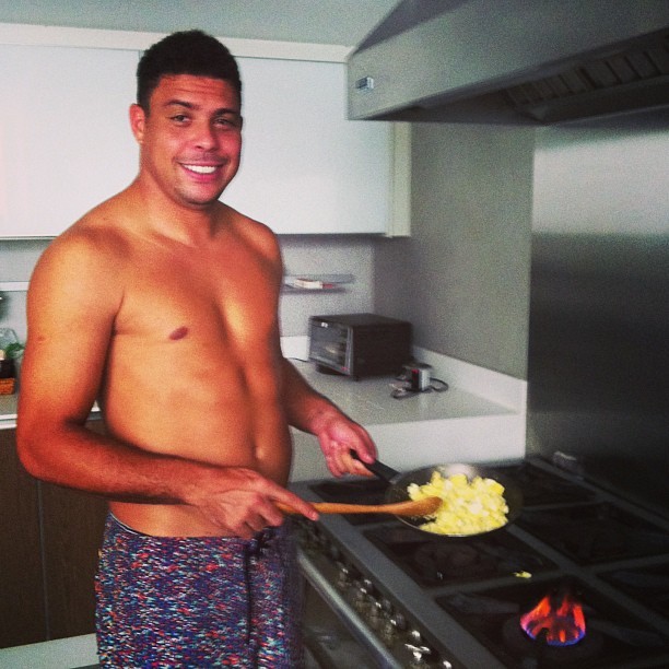 Parece que Paula Morais está fazendo Ronaldo andar na linha. Além de ajudar o jogador a correr para perder a barriguinha e voltar a ser saudável, a DJ ainda publicou a foto de Ronaldo cozinhando.