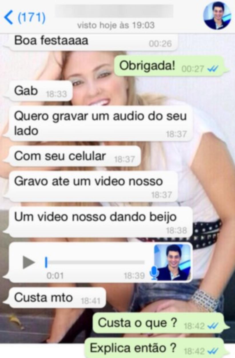 "Aí ele disse que fantasia mexe com a imaginação dele. Pedi pra ele mandar áudio. Ele disse que não mandaria, que preferia grava um vídeo nosso juntos beijando e etc... E mandou uma foto dele de peruca falando que estava pronto pra festa".