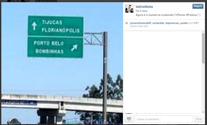No Instagram, ele postou uma foto exibindo a placa do estado e na legenda escreveu: “Agora é o mundo se acabando!! #Férias”. Em uma foto publicada pelo amigo, ele aparece com um grupo num restaurante catarinense.